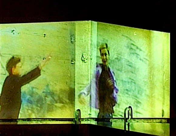 The videoloops in this series are about people’s endeavours and determinism to come a little closer to their dreams. Within the site-specific installation other loops are included, loops that function as funny and ironic comments in a kind of dialogue that develops within their spatial arrangement and grouping.